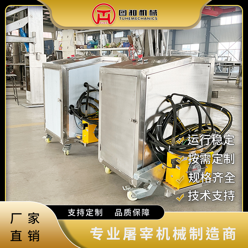 从事工艺设备的整体设计、单机设计、安装调试等是集科研与生产与一体的企业。结合众多用户使用后的信息反馈,开发研制了一系列技术、结构合复合商检出口标准的畜禽屠宰系列成套设备